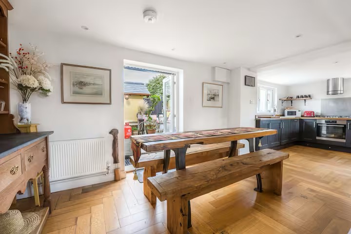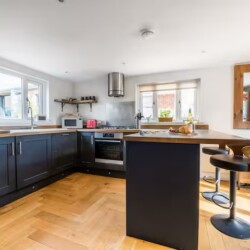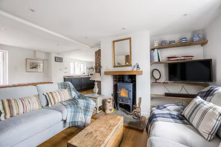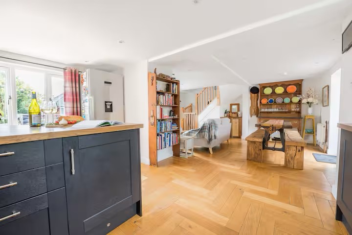 Inside, the heart of the home is a spacious open-plan living area. Designed for togetherness, it features a warm wood-burning stove and a large dining table ready for family feasts. The kitchen is fully equipped for the keen cook—complete with an air fryer, Nutri-bullet, and breakfast bar for those slow holiday mornings.