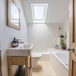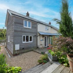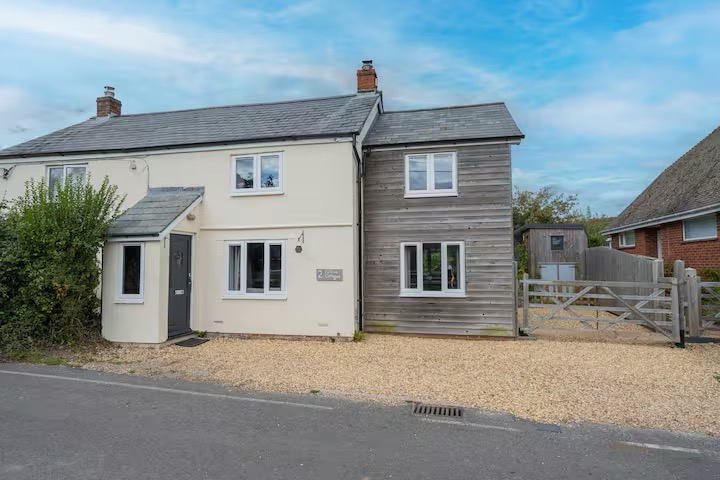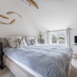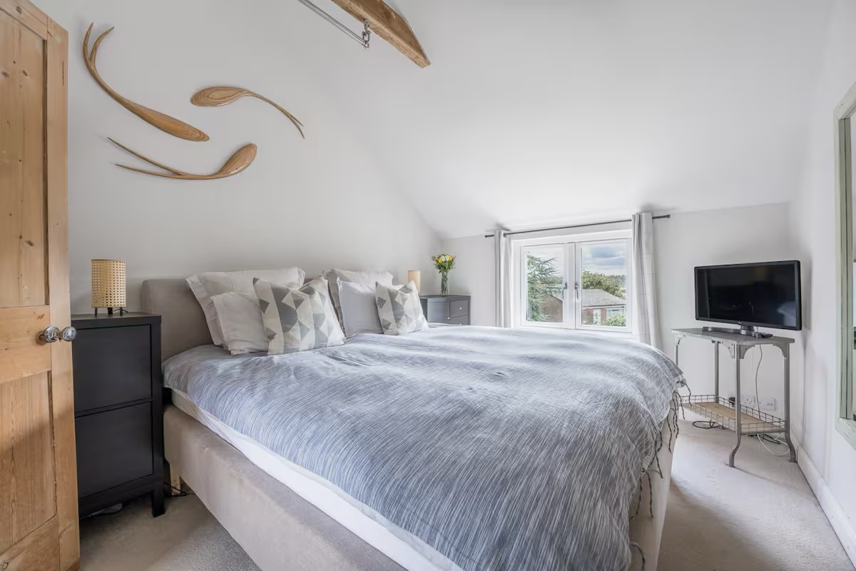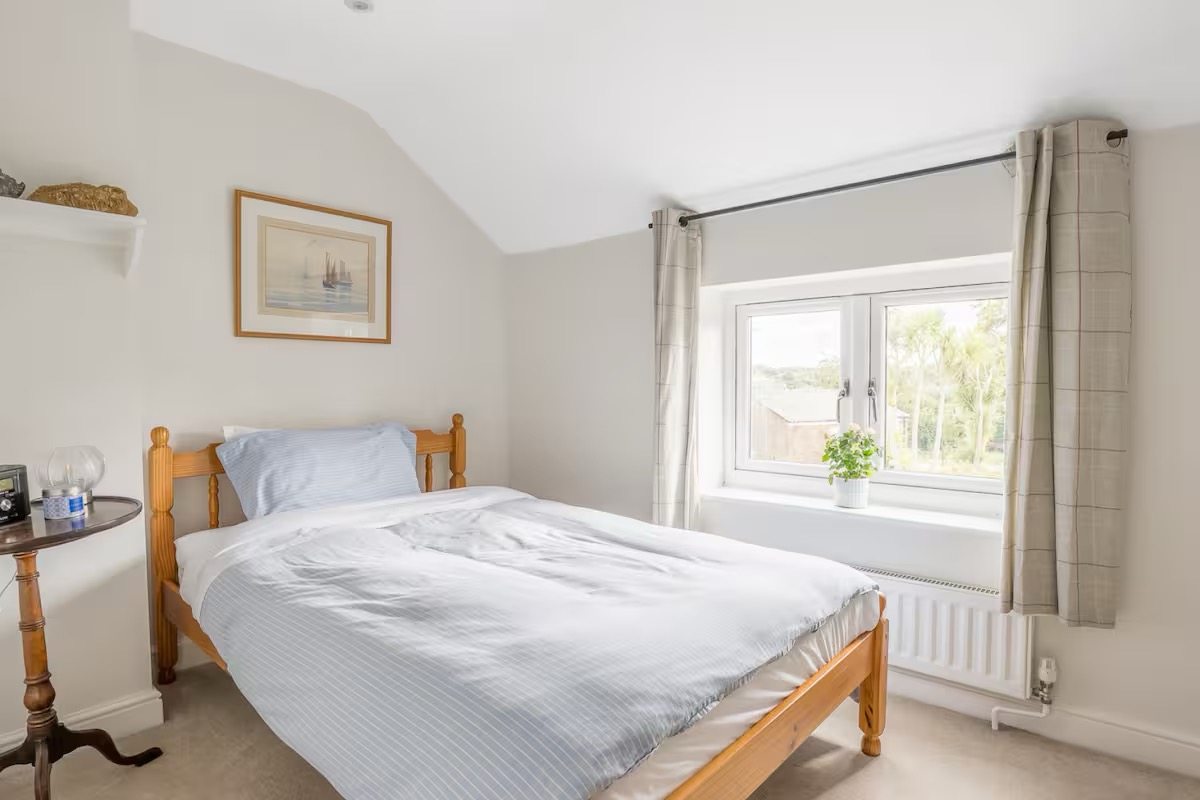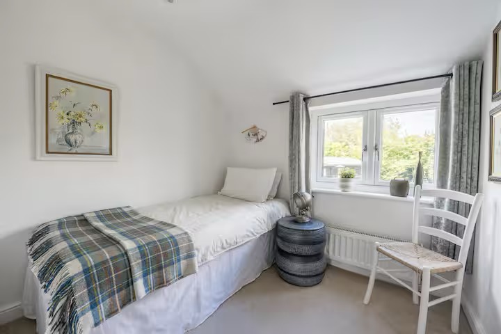 Upstairs, the cottage sleeps five comfortably across three thoughtfully styled bedrooms: